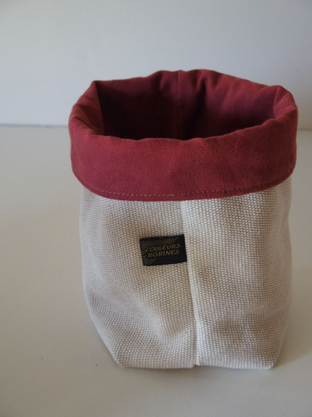 Corbeille de table légère en toile nattée coton écru et doublure marron.
