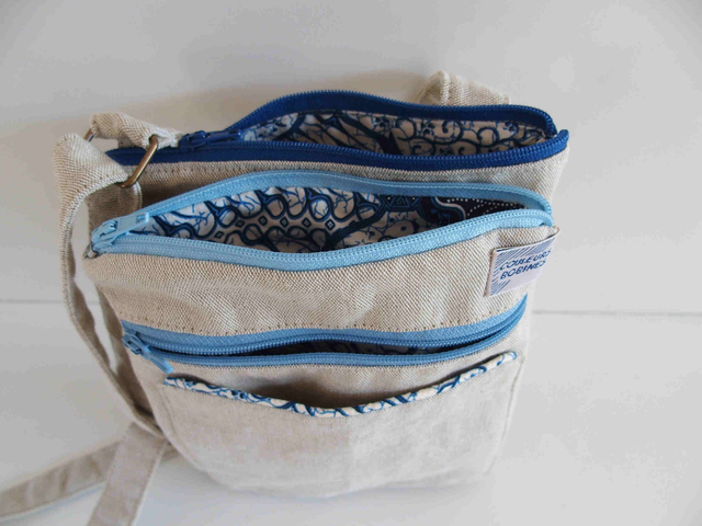 Deux grandes poches indépendantes, dont l’une avec une petite poche zippée intérieure (12cm)