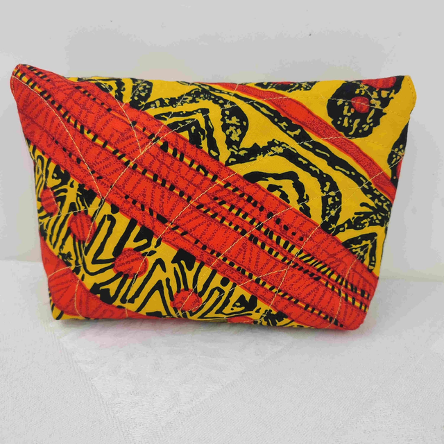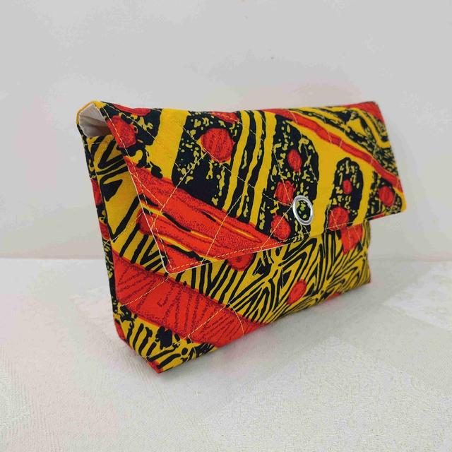 Pochette en tissu coton Wax imprimé motifs aux couleurs soutenues jaune, orange et noir