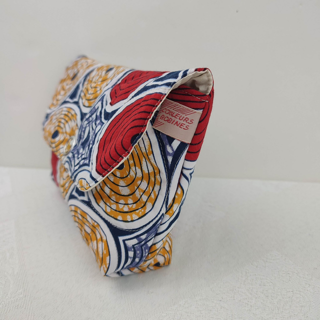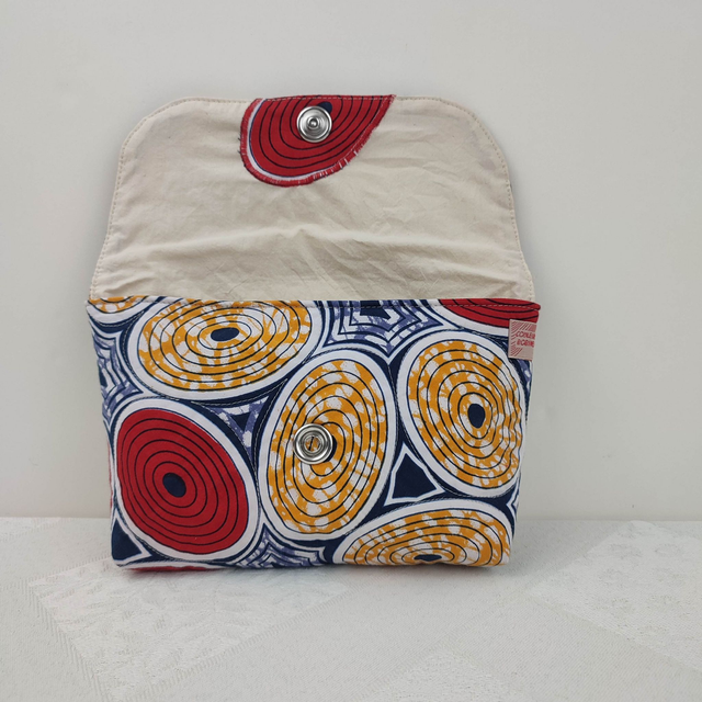 Pochette modèle Mattia en tissu coton Wax imprimé ronds jaune et rouge