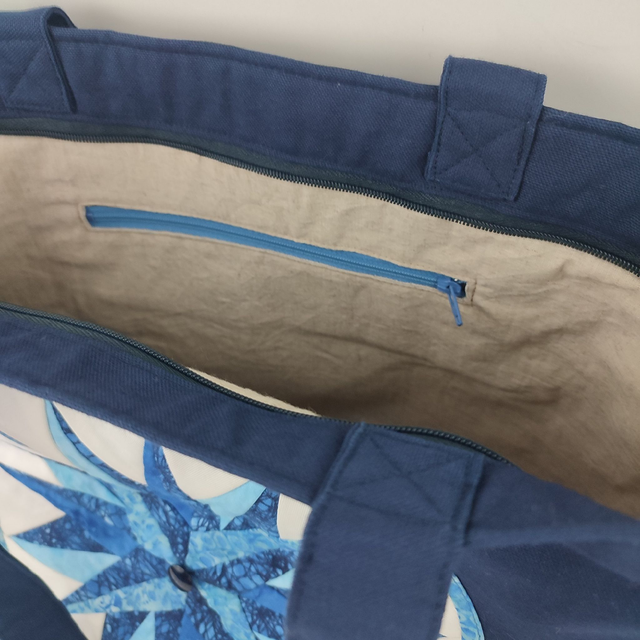 Déco "Rose des vents" en patchwork de tissus bleus et écru