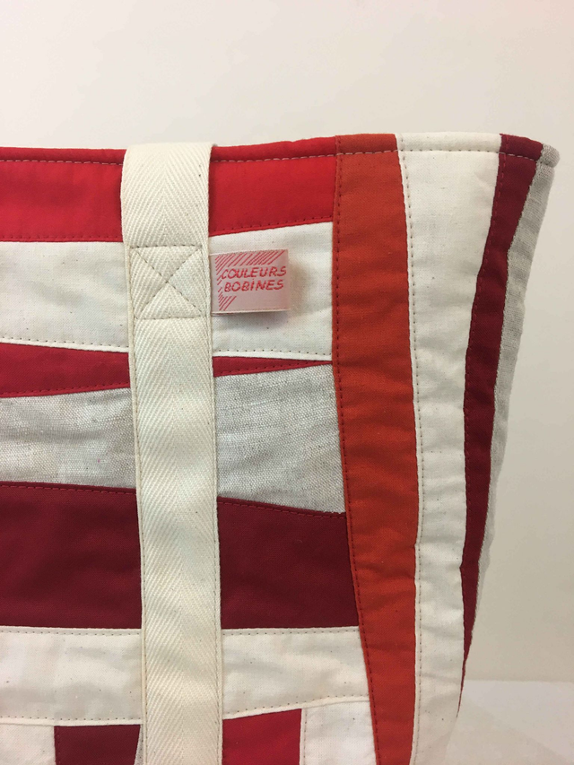 Tissu extérieur en patchwork toile écrue de tissus rouges.